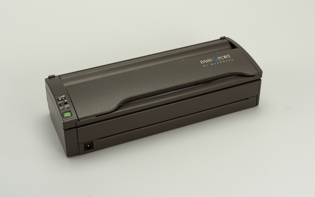 Passport Portable Copier; Company: Xerox; Designed by Denis Stemmle, Robert Robideau; Manufactured by AT&T Global Information Systems (United States); Made for Quadmark (United States); USA; plastic housing; Overall: 6.2 x 30 x 10.8 cm (2 7/16 x 11 13/16 x 4 1/4 in.); Gift of Quadmark; 1995-89-1