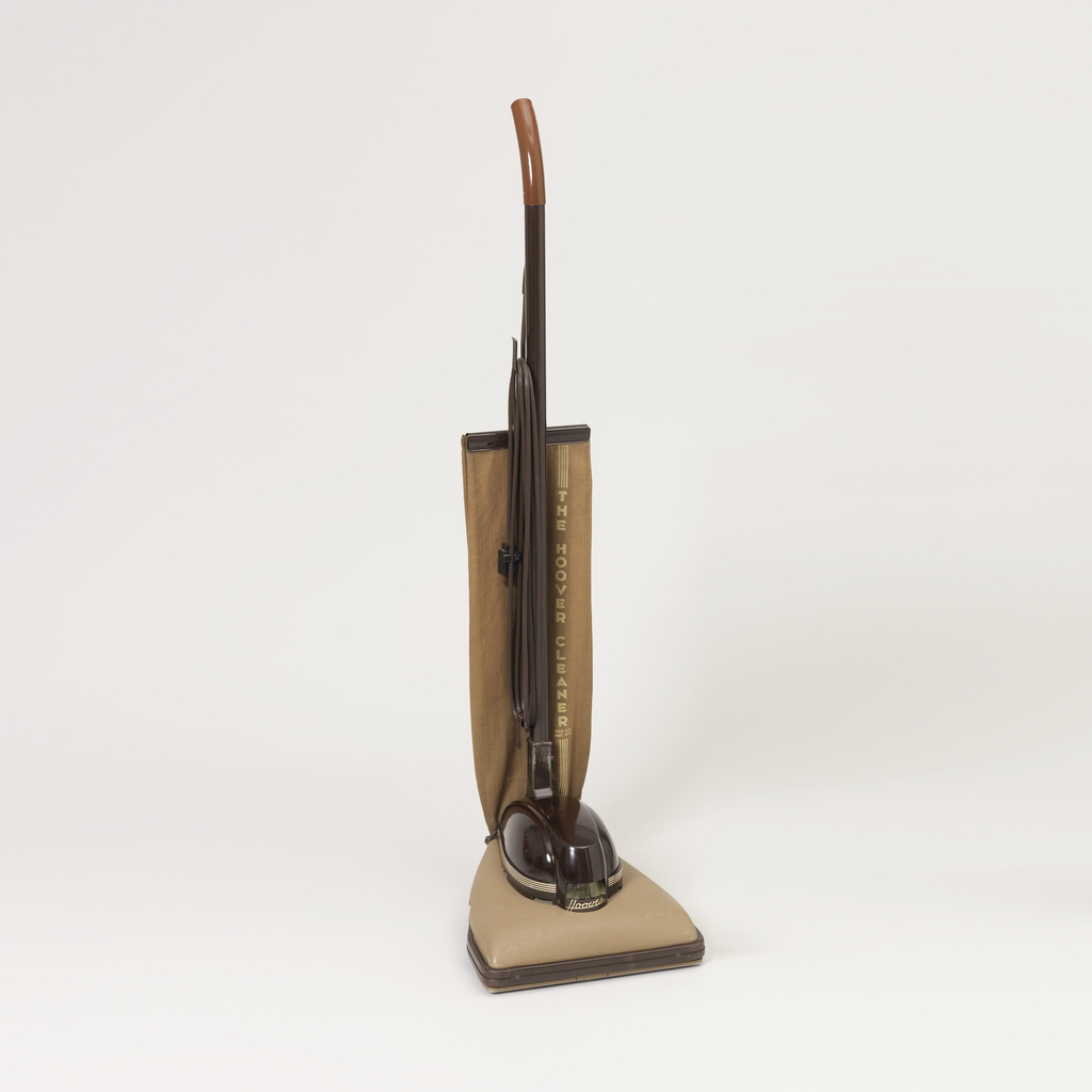 Model 28 Vacuum Cleaner; Designed by Henry Dreyfuss (American, 1904–1972); Manufactured by Hoover, Ltd. (United Kingdom); USA; bakelite (tm), cloth, metal; H x W x D (vacuum only): 120 x 34 x 36 cm (47 1/4 x 13 3/8 x 14 3/16 in.); Gift in honor of Erma E. Heagy by Edna M. Gingrich; 1996-120-1-a/k