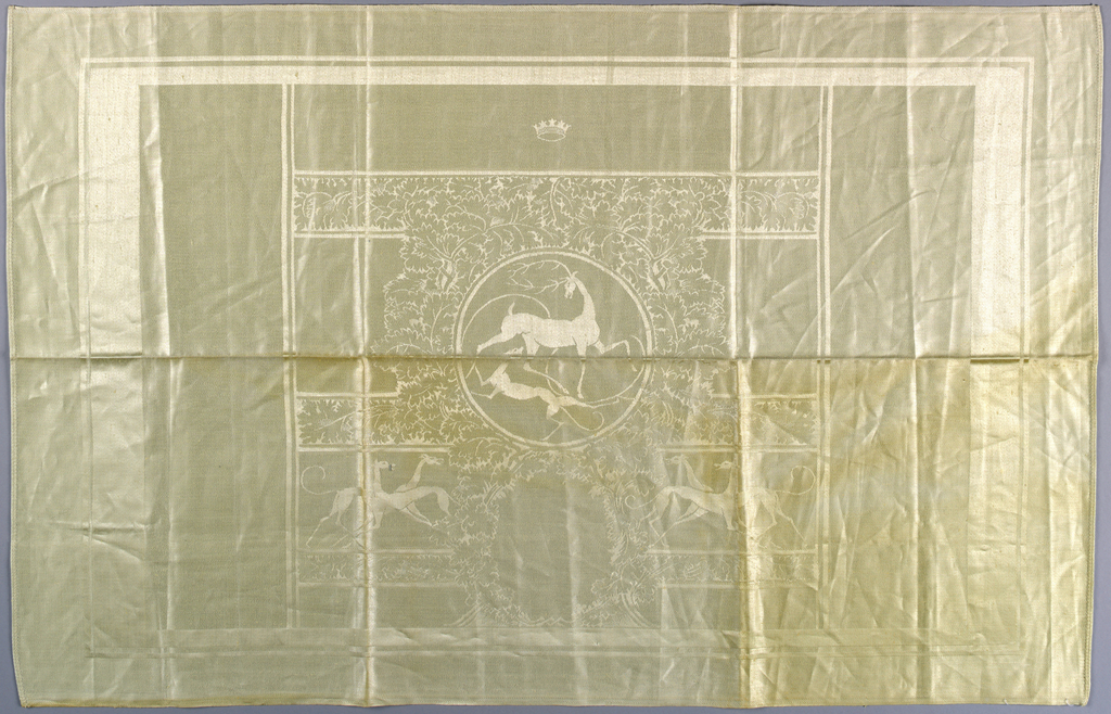 This is a Tray cloth. It is dated ca. 1930 and we acquired it in 1996. Its technique is damask. It is a part of the Textiles department.