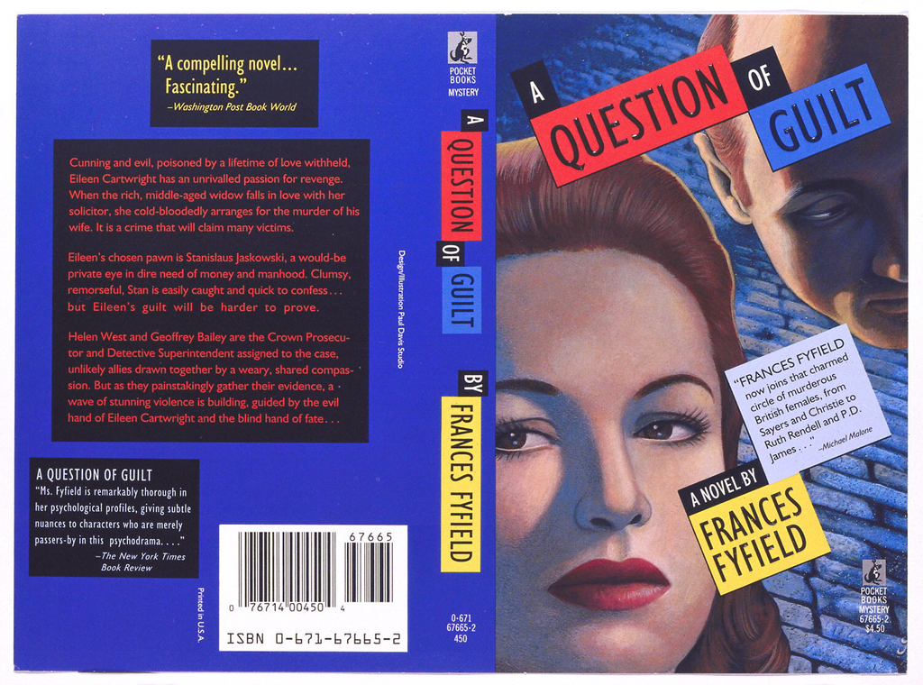 Book Cover, A Question of Guilt; Designed by Paul Davis (American, b. 1938); Written by Frances Fyfield; USA; offset color lithograph on paper; 17.1 x 23.2 cm (6 3/4 x 9 1/8 in.); Gift of Steven Heller; 1996-74-31