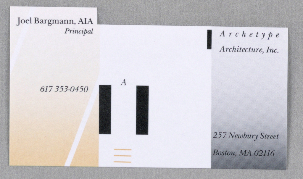 Business Card, Archetype Architecture, Inc.; USA; lithograph on paper; 5.1 x 9 cm (2 x 3 9/16 in.); Gift of Nancy Skolos; 1996-90-2
