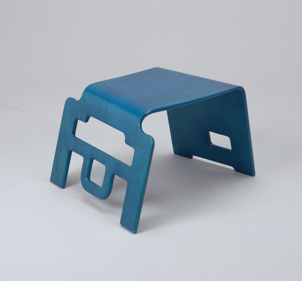 This is a Stool. It was designed by Bashir Zivari and manufactured by Skools, Inc.. It is dated introduced 1993 and we acquired it in 1997. Its medium is wood (laminated and bent). It is a part of the Product Design and Decorative Arts department.