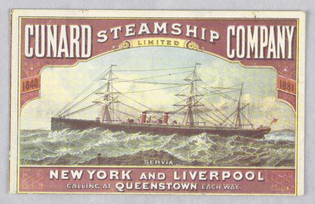 Advertisement Card, Cunard Steamship Co.; Gift of Martha Lamarque Sarno in memory of Eduardo Abril Lamarque; 1997-165-1