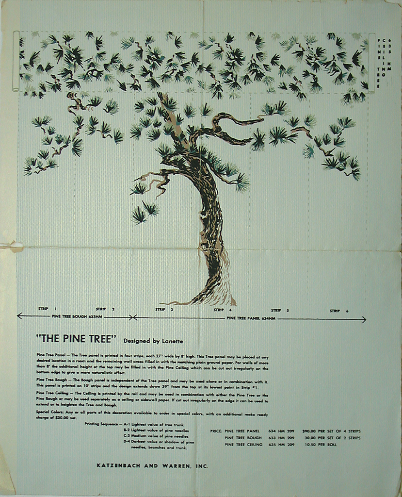 Mural Miniature, The Pine Tree; Designed by Lanette Scheeline (American, 1910–2001); Manufactured by Katzenbach and Warren, Inc. (United States); USA; screen printed on paper; 47 x 38 cm (18 1/2 x 14 15/16 in. ); Gift of Lanette Scheeline; 1998-29-75