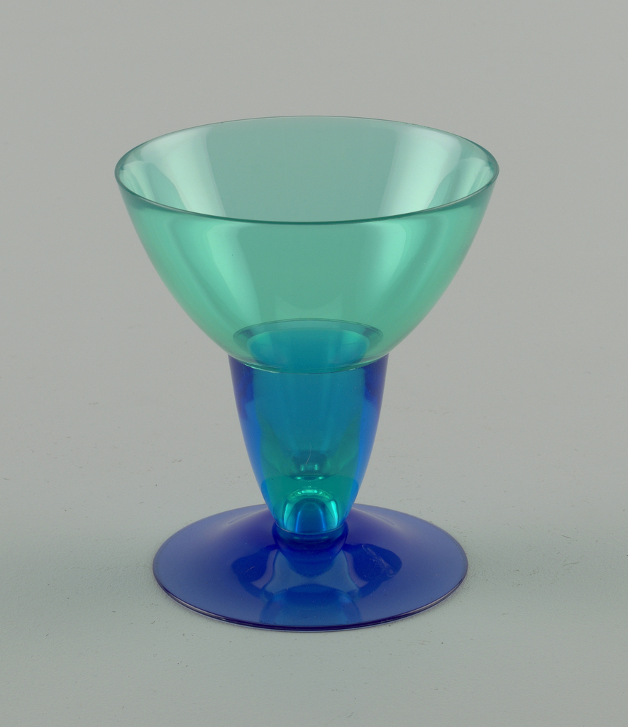 This is a drinking glass. It was designed by Laura Handler and co-designed by Dennis Decker and Amanda Hong Magalhaes and manufactured by Metrokane, Inc.. It is dated 1993 and we acquired it in 1998. Its medium is acrylic resin. It is a part of the Product Design and Decorative Arts department.