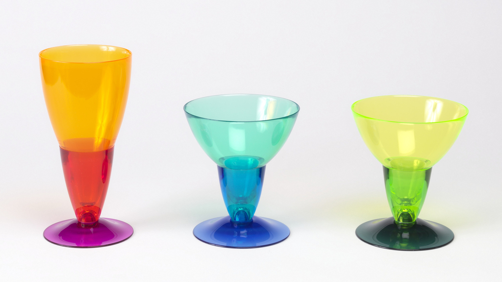 This is a drinking glass. It was designed by Laura Handler and co-designed by Dennis Decker and Amanda Hong Magalhaes and manufactured by Metrokane, Inc.. It is dated 1993 and we acquired it in 1998. Its medium is acrylic resin. It is a part of the Product Design and Decorative Arts department.