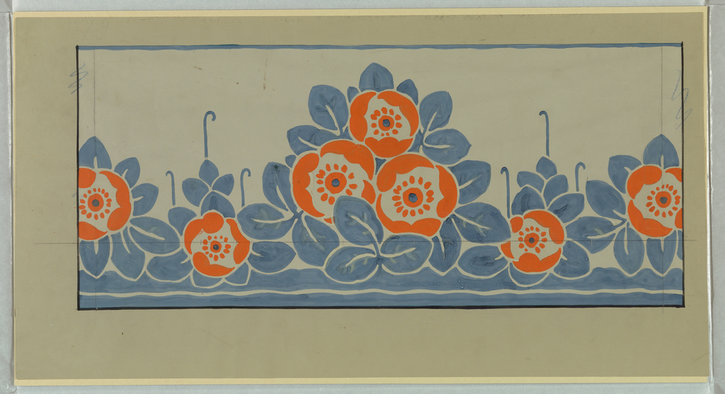 Drawing, Design for a Floral Border; brush and gouache on gray wove paper; 55.9 x 41.9 cm (22 x 16 1/2 in. ); Gift of Carolle Thibaut-Pomerantz; 1998-62-1