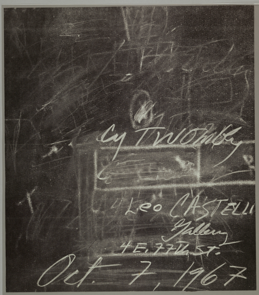 Poster, Exhibition Poster: Cy Twombly, Leo Castelli Gallery, New York; Published by Leo Castelli Gallery; offset lithograph; 63.2 x 55.6 cm (24 7/8 x 21 7/8 in. ); Museum purchase from General Acquisitions Endowment and Smithsonian Institution Collections Acquisition Program Funds; 1999-45-28