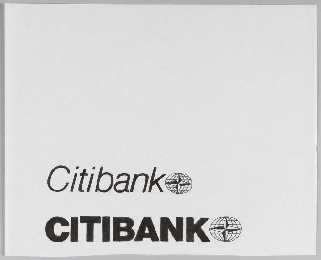 <ref name=CH>{{cite web |url=https://www-5.collection.cooperhewitt.org/objects/18673103/ |title=Drawing, Design for Citibank/Citicorp Logo |author=Cooper Hewitt, Smithsonian Design Museum |accessdate=20 December 2025 |publisher=Smithsonian Institution}}</ref>