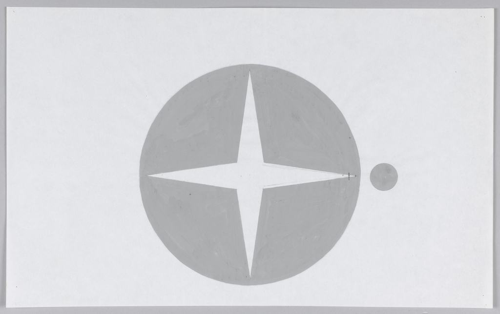 Drawing, Citibank Logo Design; Designed by Dan Friedman (American, 1945–1995); Office of Anspach Grossman Portugal; Client: Citibank (United States); USA; brush and gray gouache over graphite on thin white tracing paper; 21.9 x 35.6 cm (8 5/8 x 14 in. ); Gift of Ken Friedman; 1997-19-44