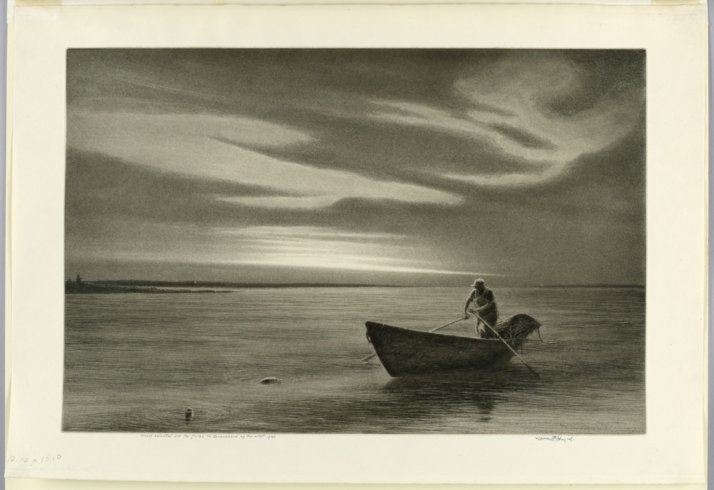 Print, The Doryman; Kerr Eby (American, 1889–1946); etching and aquatint in black ink on paper; Platemark: 25 × 37.6 cm (9 13/16 × 14 13/16 in.); Gift of Jules R. Breuchaud; 1962-32-17
