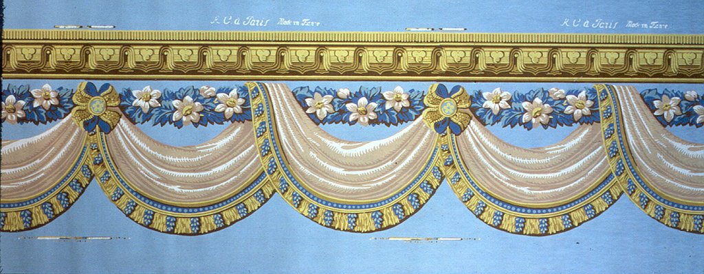 This is a frieze. It was made by Robert Caillard. It is dated 1920–50 and we acquired it in 1998. Its medium is block-printed. It is a part of the Wallcoverings department.