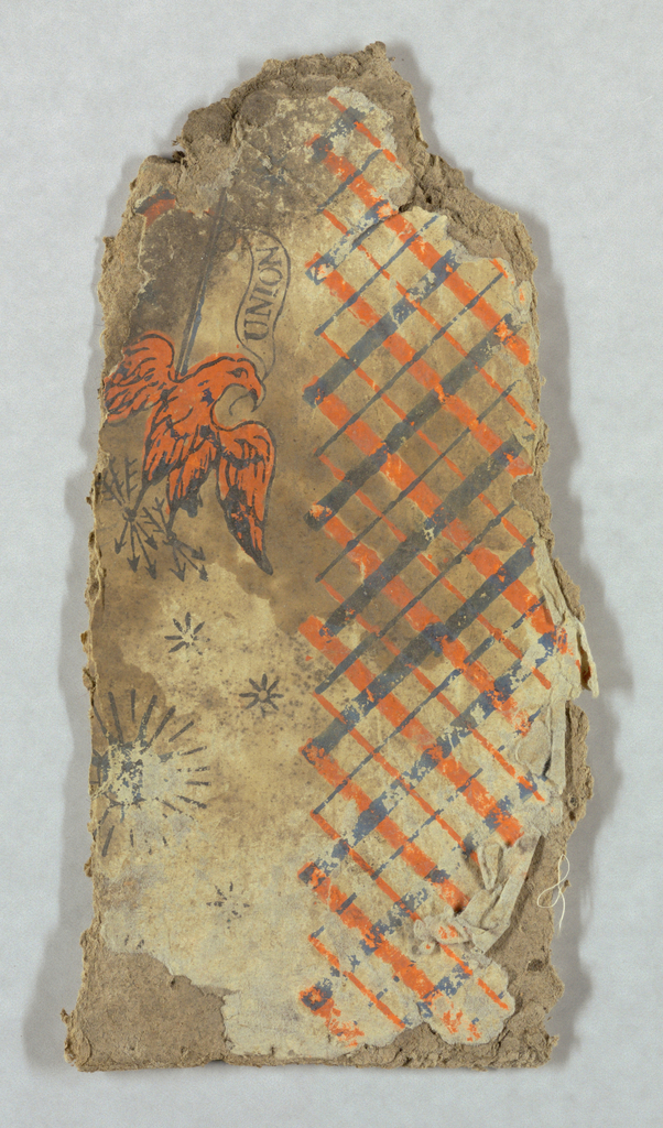 This is a Bandbox. It is dated 1820–50 and we acquired it in 1999. Its medium is block-printed paper on pasteboard support. It is a part of the Wallcoverings department.