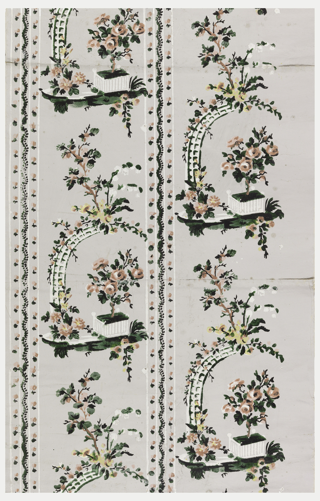This is a Sidewall. It is dated ca. 1780 and we acquired it in 1999. Its medium is block-printed on handmade paper, varnish. It is a part of the Wallcoverings department.
