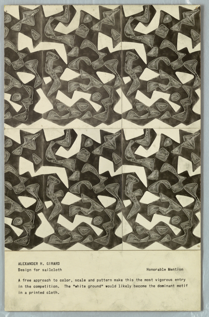 This is a Photograph. It was designed by Alexander Hayden Girard. It is dated 1947–48 and we acquired it in 2000. Its medium is gelatin silver prints on paper mounted on cardboard. It is a part of the Drawings, Prints, and Graphic Design department.