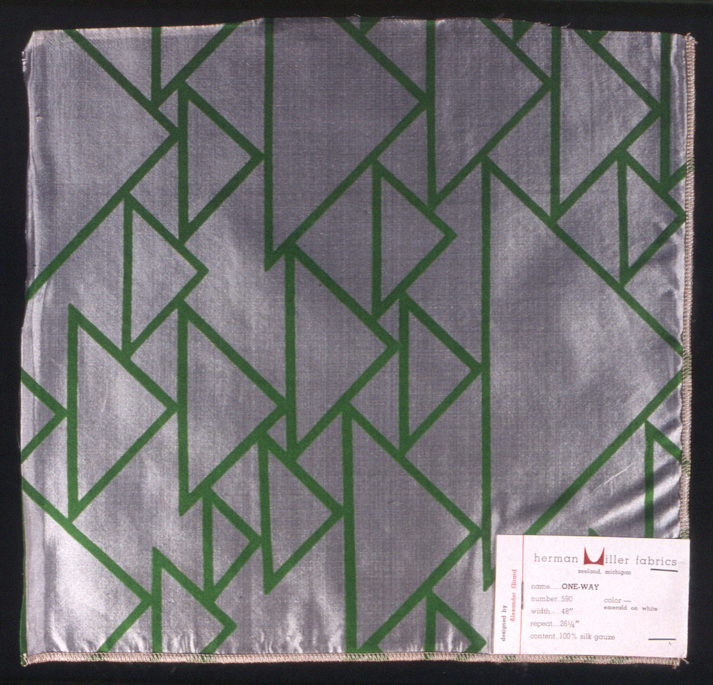 Sample, One-Way; Designed by Alexander Hayden Girard (American, 1907–1993); Produced by Herman Miller Furniture Company (United States); Manufactured by American Art Textile Printing Company, Inc.; USA; silk; Warp x Weft: 29.5 x 31 cm (11 5/8 x 12 3/16 in.); Gift of Alexander H. Girard; 1969-165-61