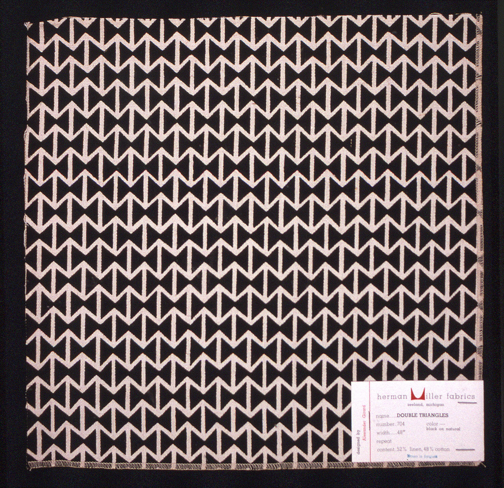 Sample, Double Triangles; Designed by Alexander Hayden Girard (American, 1907–1993); Produced by Herman Miller Furniture Company (United States); Manufactured by American Art Textile Printing Company, Inc.; Belgium; 52% linen, 48% cotton; Warp x Weft: 30.5 x 31 cm (12 x 12 3/16 in.); Gift of Alexander H. Girard; 1969-165-161