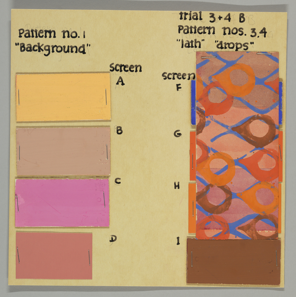 This is a Sample. It was designed by Alexander Hayden Girard. It is dated ca. 1958 and we acquired it in 1969. Its medium is cotton 39%, wool 46%, rayon 15% and its technique is printed on plain weave. It is a part of the Textiles department.