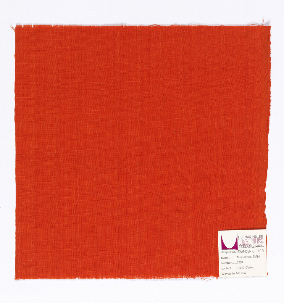 Sample, Mexicotton Solid; Designed by Alexander Hayden Girard (American, 1907–1993); Produced by Herman Miller Furniture Company (United States); USA; cotton; Warp x Weft: 30.5 x 30.5 cm (12 x 12 in.); Gift of Alexander H. Girard; 1969-165-540