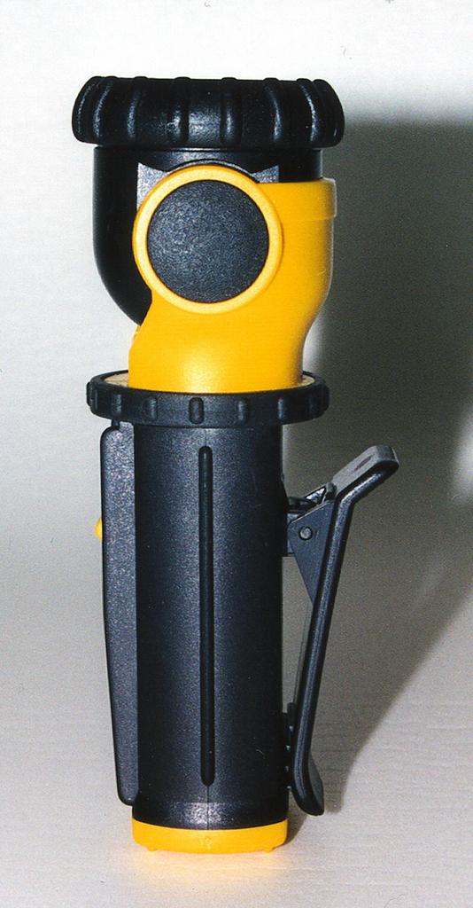 "Industrial Swivel-Lite" Flashlight; USA; plastic, rubber; a & b) 11h x 4w x 4.4d cm (4 5/16 x 1 9/16 x 1 3/4 in. ); Gift of Max Pine; 1999-53-13-a,b