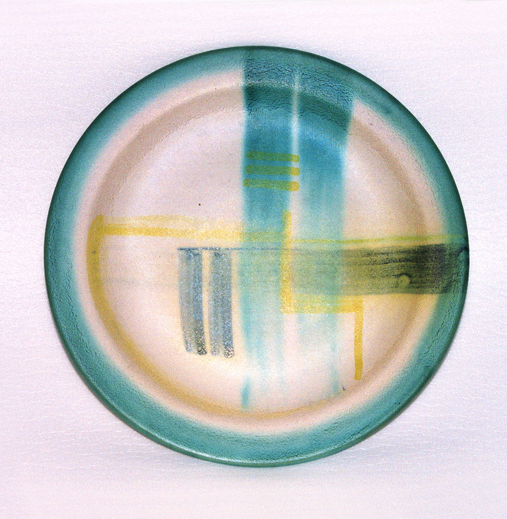 This is a plate. It was manufactured by Carstens-Neuhaldensleben. It is dated ca. 1930 and we acquired it in 1999. Its medium is glazed earthenware. It is a part of the Product Design and Decorative Arts department.