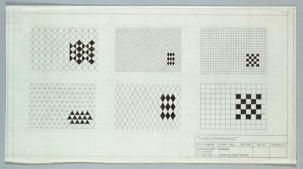 Drawing, Textile Design: Checkerboard; Designed by Alexander Hayden Girard (American, 1907–1993); Office of Herman Miller Furniture Company (United States); pen and ink, graphite on white tracing paper; 34.3 x 63.2 cm (13 1/2 x 24 7/8 in.); Gift of Alexander H. Girard; 1969-165-300