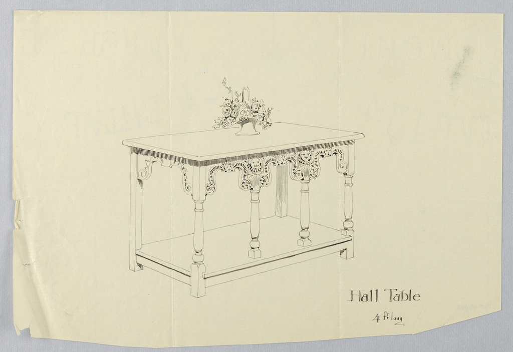 Drawing, Design for Hall Table with Border Carved in Putti Faces and Rosettes; Designed by A.N. Davenport Co.; Gift of The Lake St. Louis Historical Society; 2000-69-522
