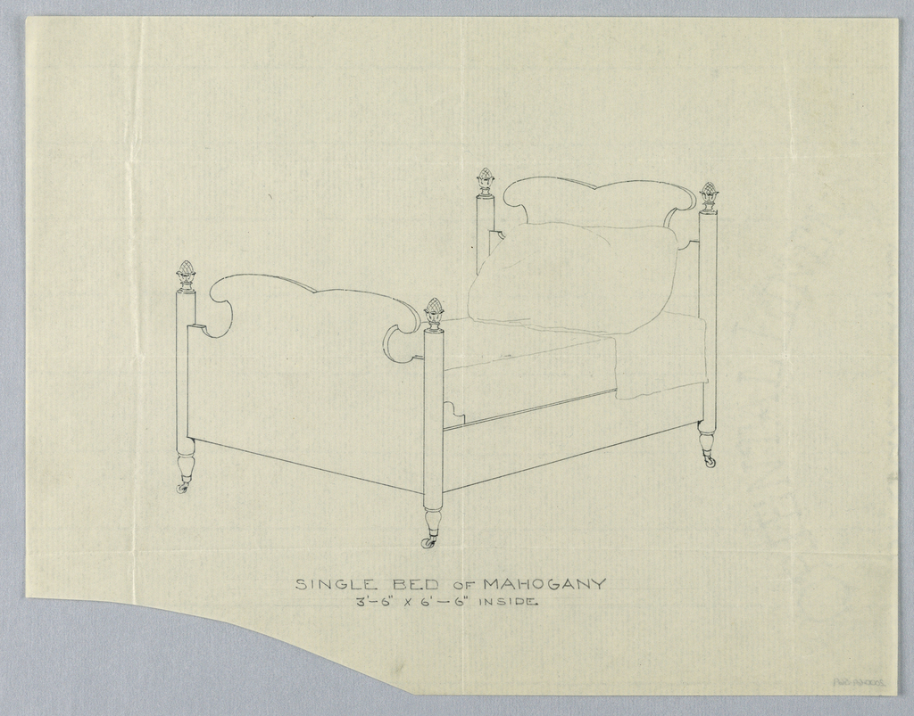 Drawing, Design for Single Bed of Mahogany with Rounded Posts, Finials, and Casters; Designed by A.N. Davenport Co.; Gift of The Lake St. Louis Historical Society; 2000-69-569