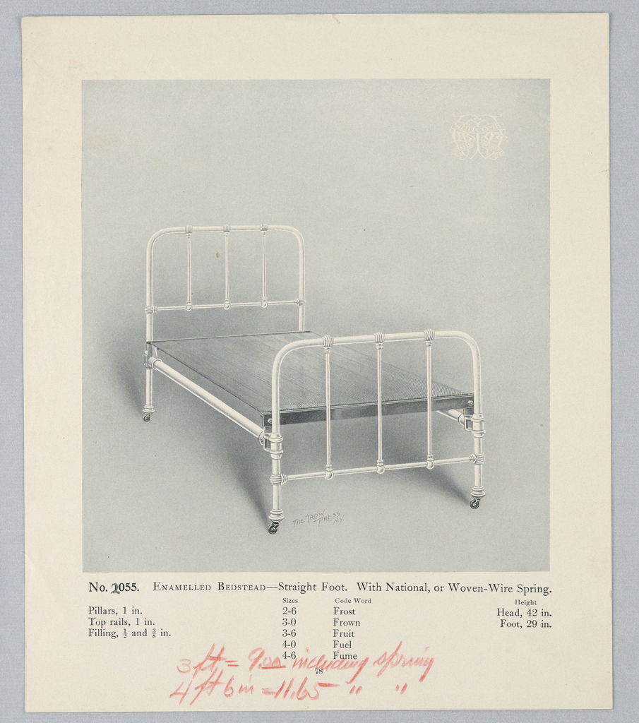 Catalogue Illustration, Design for Enamel Bedstead #2055, with Woven or Wire Springs