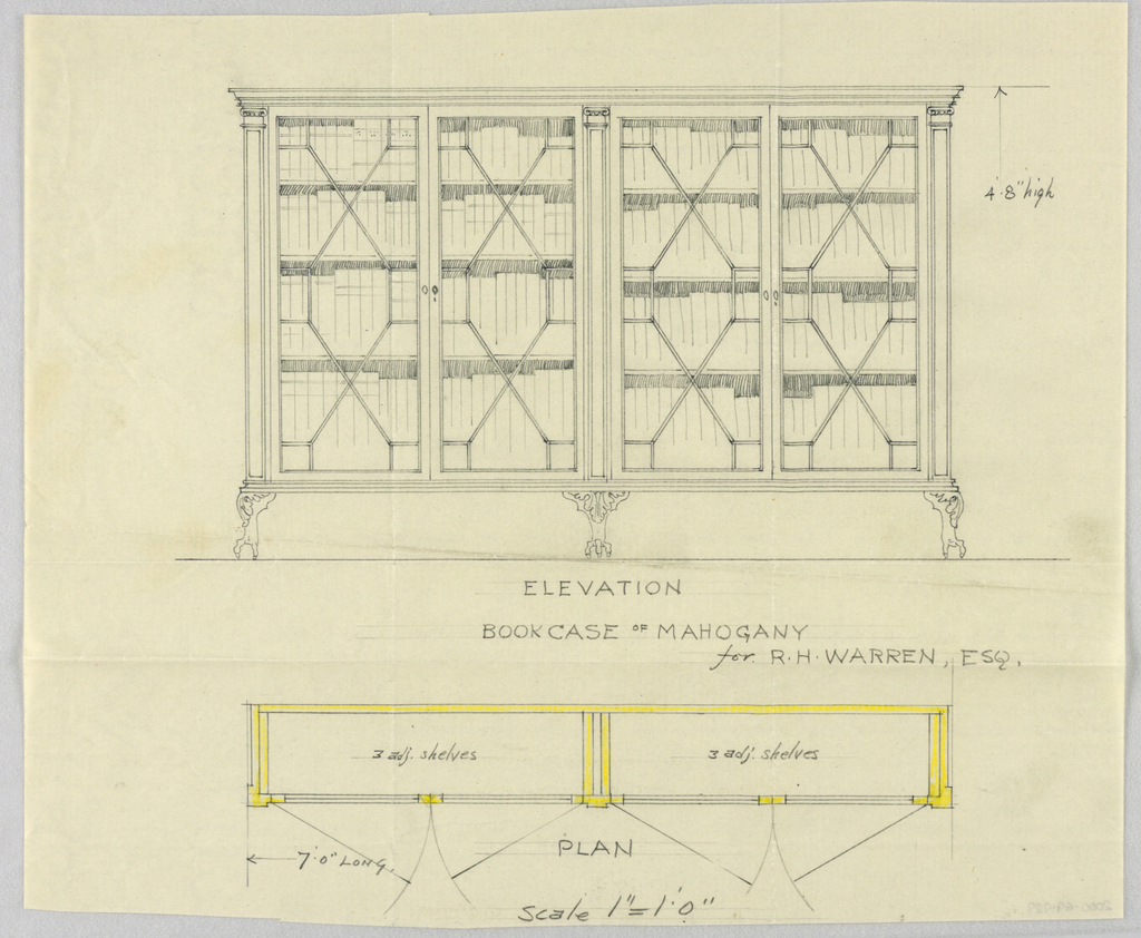 Drawing, Design for Bookcase; Designed by A.N. Davenport Co.; Gift of The Lake St. Louis Historical Society; 2000-69-929