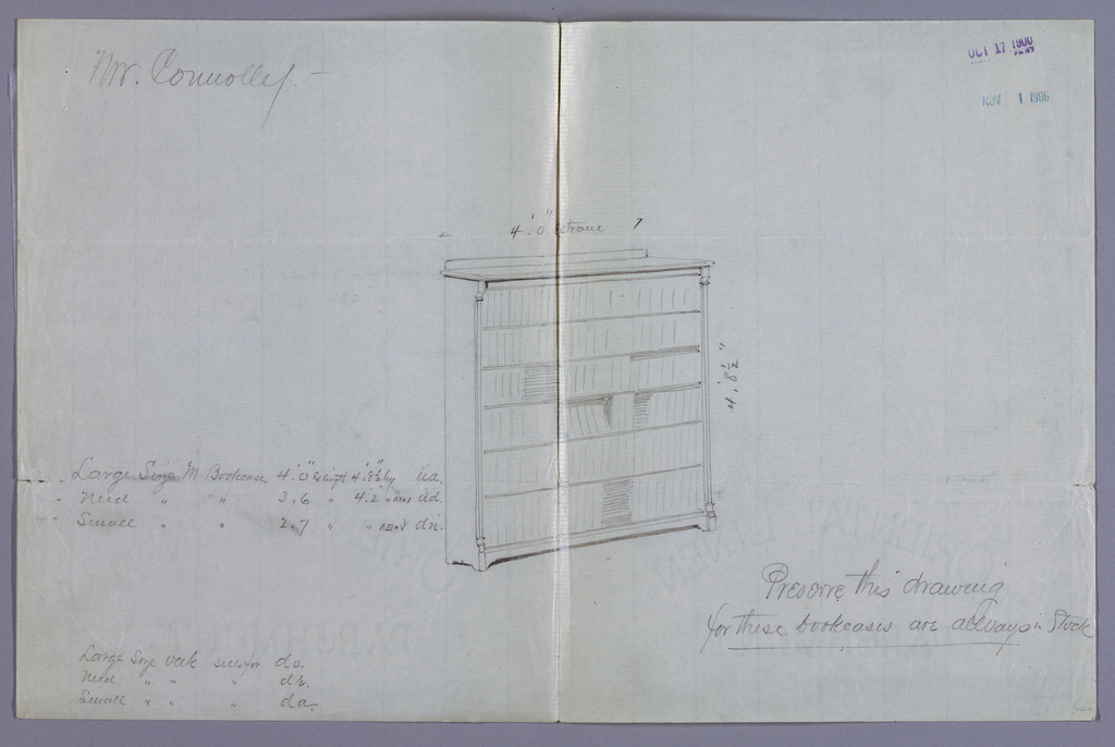 Drawing, Design for Bookcase; Designed by A.N. Davenport Co.; Gift of The Lake St. Louis Historical Society; 2000-69-932