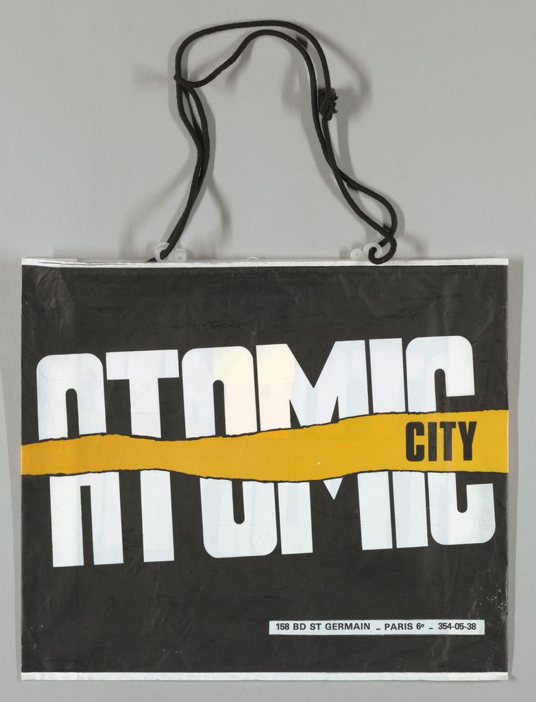 Shopping Bag, Atomic City; plastic; cord handles; 39.4 x 45.7 cm (15 1/2 x 18 in. ); Gift of Unknown Donor; 2000-26-113