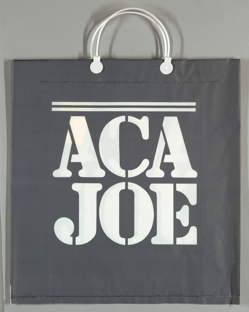 Shopping Bag, ACA Joe; paper; rigid plastic handles (attached by round plastic clips); 47.9 x 45.1 cm (18 7/8 x 17 3/4 in. ); Gift of Unknown Donor; 2000-26-131