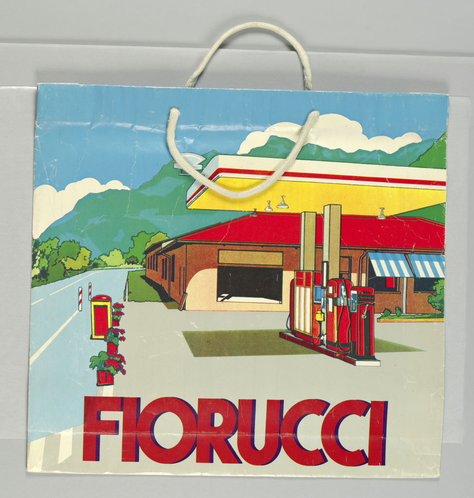Shopping Bag, Fiorucci: Gas Station; paper; 47.0 x 50.2 cm (18 1/2 x 19 3/4 in. ); Gift of Unknown Donor; 2000-26-135