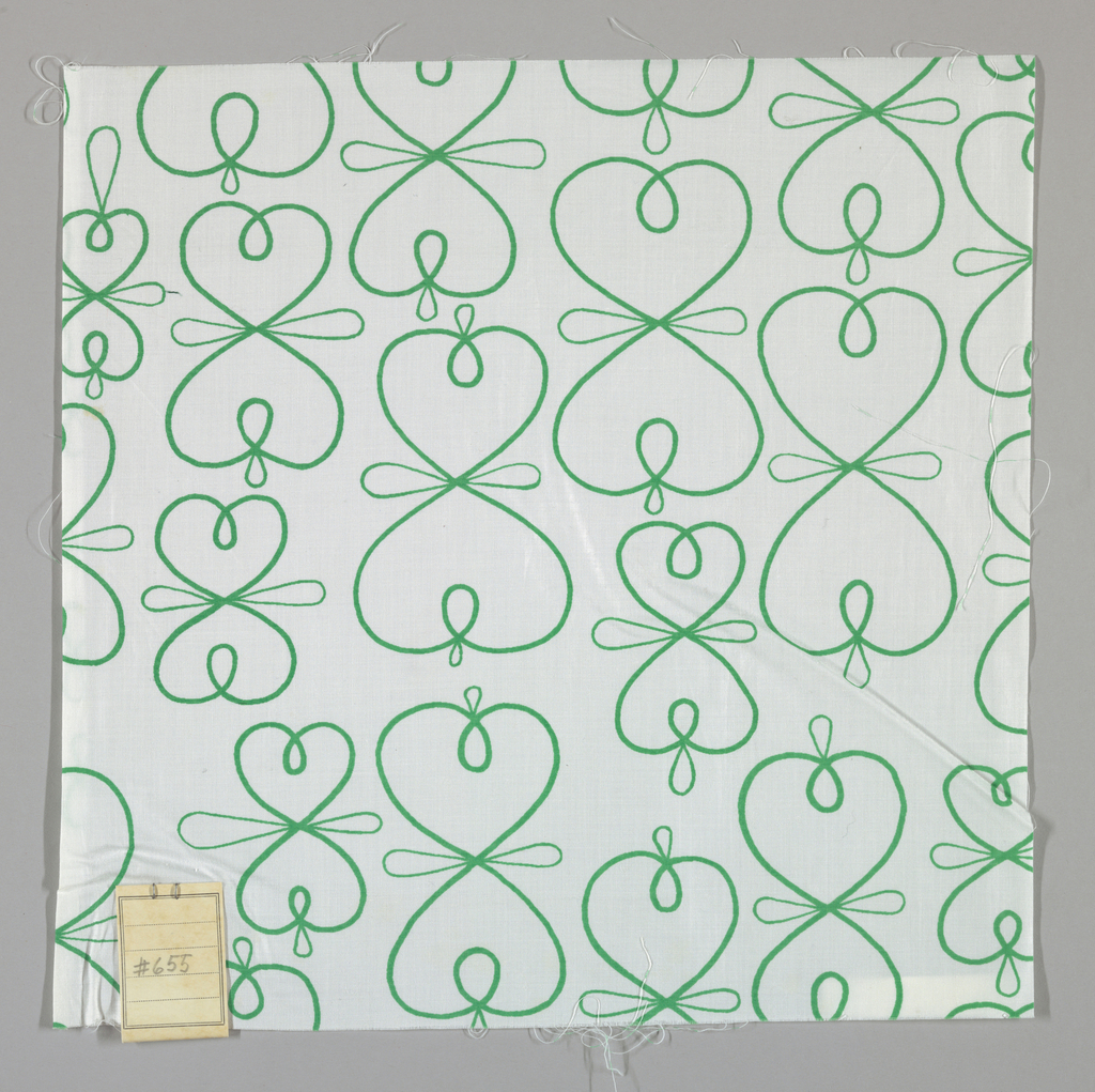 This is a Textile fragment. It was designed by Alexander Hayden Girard and manufactured by American Art Textile Printing Company, Inc. and produced by Herman Miller Furniture Company. It is dated 1955 and we acquired it in 1969. Its medium is cotton and its technique is printed on plain weave. It is a part of the Textiles department.