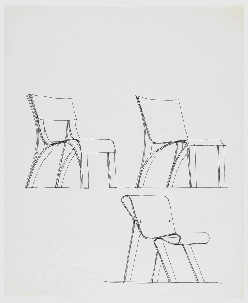 Drawing, Three Chairs for Plycraft; Designed by Karim Rashid (Canadian, b. Egypt, 1960); Canada; pen and black ink on vellum; 43.2 x 35.6 cm (17 x 14 in. ); Gift of Karim Rashid; 2000-50-11