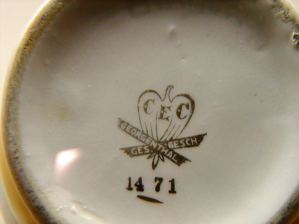 This is a Pitcher. It was manufactured by Georgenthal. It is dated ca. 1930 and we acquired it in 2002. Its medium is glazed earthenware. It is a part of the Product Design and Decorative Arts department.