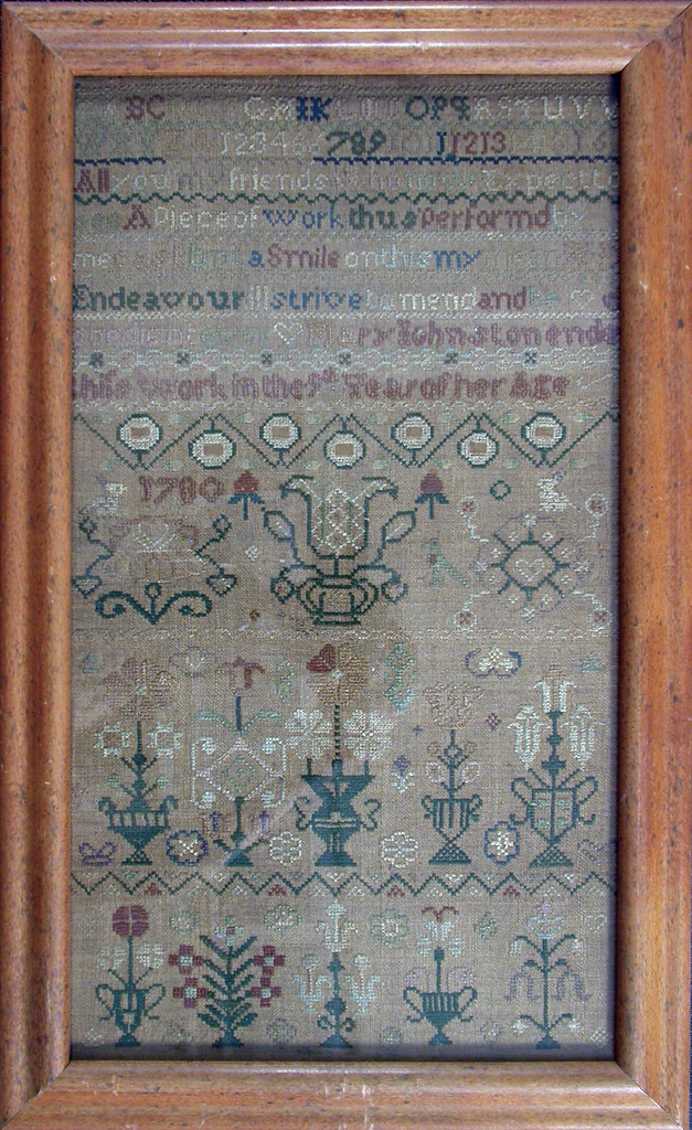 <ref name=CH>{{cite web |url=https://www-5.collection.cooperhewitt.org/objects/18697357/ |title=Sampler (England) |author=Cooper Hewitt, Smithsonian Design Museum |accessdate=20 December 2025 |publisher=Smithsonian Institution}}</ref>