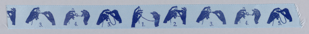 Ribbon And Sample, How to Tat; Designed by Laura Foster Nicholson (American, b. 1954); Printed by Ribbon Printers Unlimited; USA; 100% polyester; L x W (a): 295 x 2.5 cm (9 ft. 8 1/8 in. x 1 in.) L x W (b): 27.5 x 2.5 cm (10 13/16 in. x 1 in.); Gift of Laura Foster Nicholson; 2003-10-12-a,b