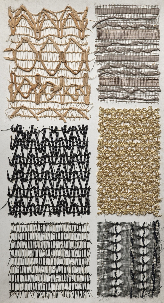 Sample Book, Pailles Été; Company: Claude Frères (France); France; paper, cardboard, silk, straw, and mixed media samples; H x W x D: 38.1 x 24.5 x 7.6 cm (15 x 9 5/8 x 3 in.) Open: 38.1 x 53.3 x 15.9 cm (15 x 21 x 6 1/4 in.) 44 pages; Museum purchase from Friends of Textiles Fund; 2004-7-1