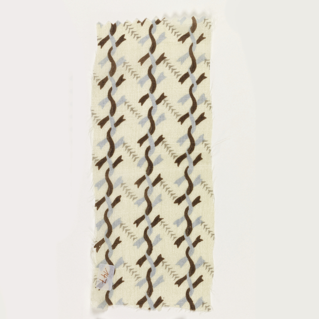 This is a Sample. It was designed by Wiener Werkstätte and Fredericka Löw-Lazar. It is dated 1910–17 and we acquired it in 2005. Its medium is silk and its technique is block printed on plain weave. It is a part of the Textiles department.