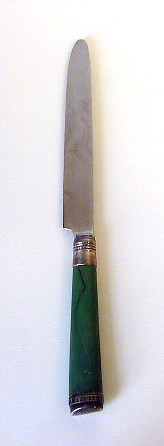 Dessert Knife with Green-Stained Ivory Handle Knife