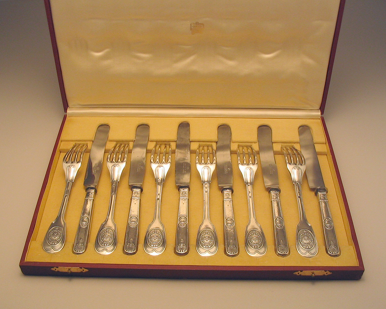 On reverse of stem, stamped: [1] French mark for .950 fineness, used 1819-1838 [2] Maker's mark, possibly Jean-Charles Cahier [3] Paris guaranty mark, used 1819-1838