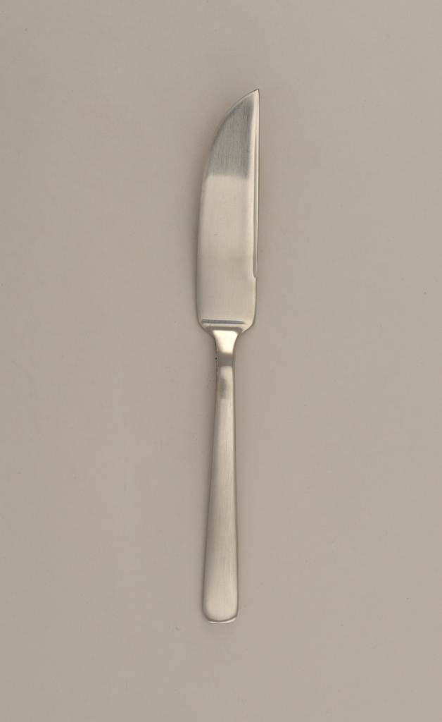 This is a Fish knife. It was designed by Kay Bojesen and manufactured by Rosendahl and made by Kay Bojesen. It is dated 1980 and we acquired it in 1992. Its medium is stainless steel. It is a part of the Product Design and Decorative Arts department.