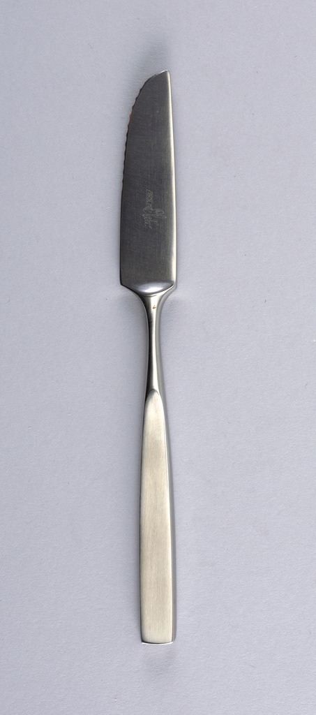 This is a Dinner knife. It was designed by Donald A. Wallance. It is dated mid-20th century and we acquired it in 1991. It is a part of the Product Design and Decorative Arts department.