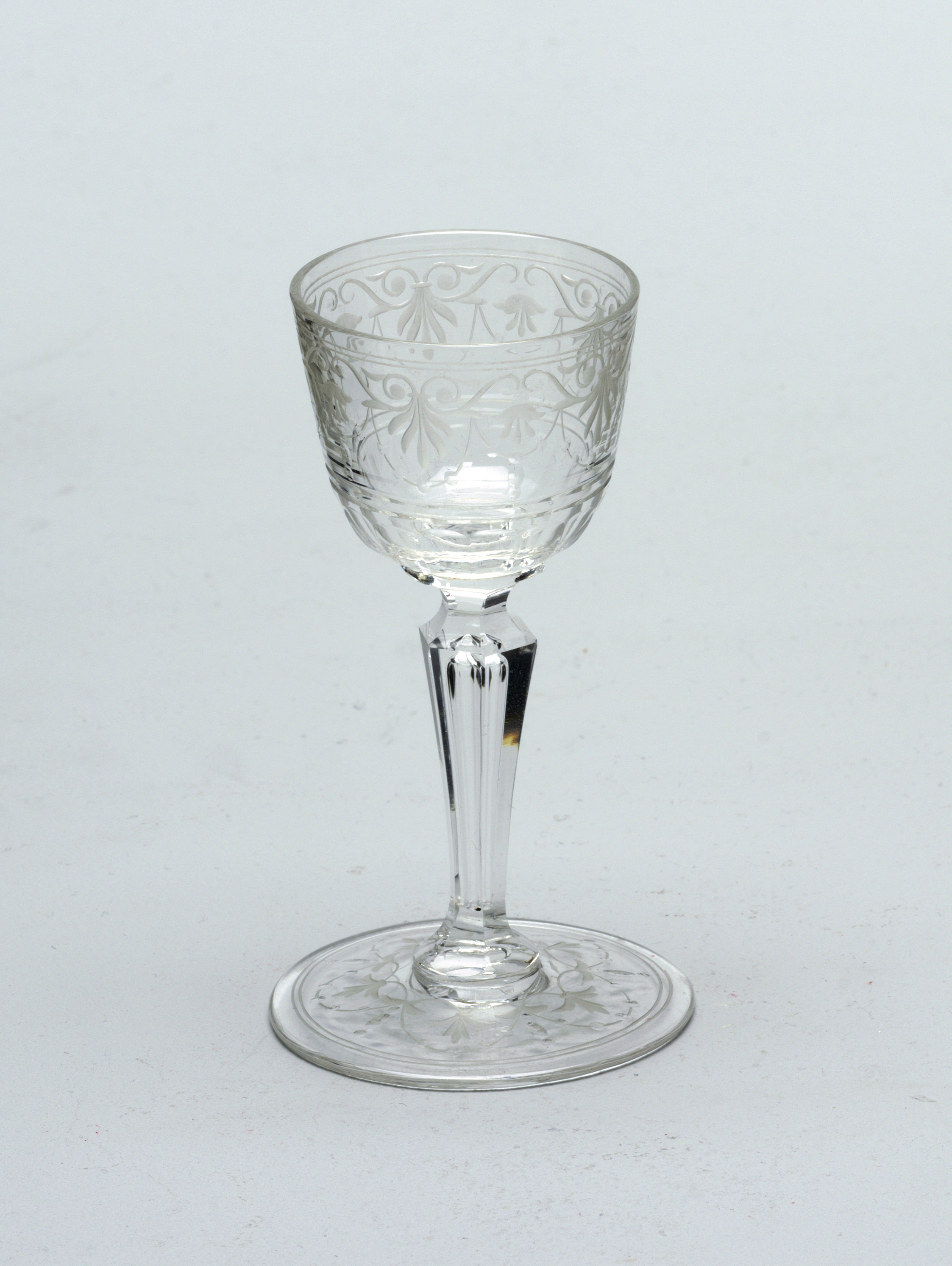 This is a Cordial glass. It was designed by Professor Josef Storck and manufactured by J. & L. Lobmeyr GmbH and Meyr's Neffen, Adolf.