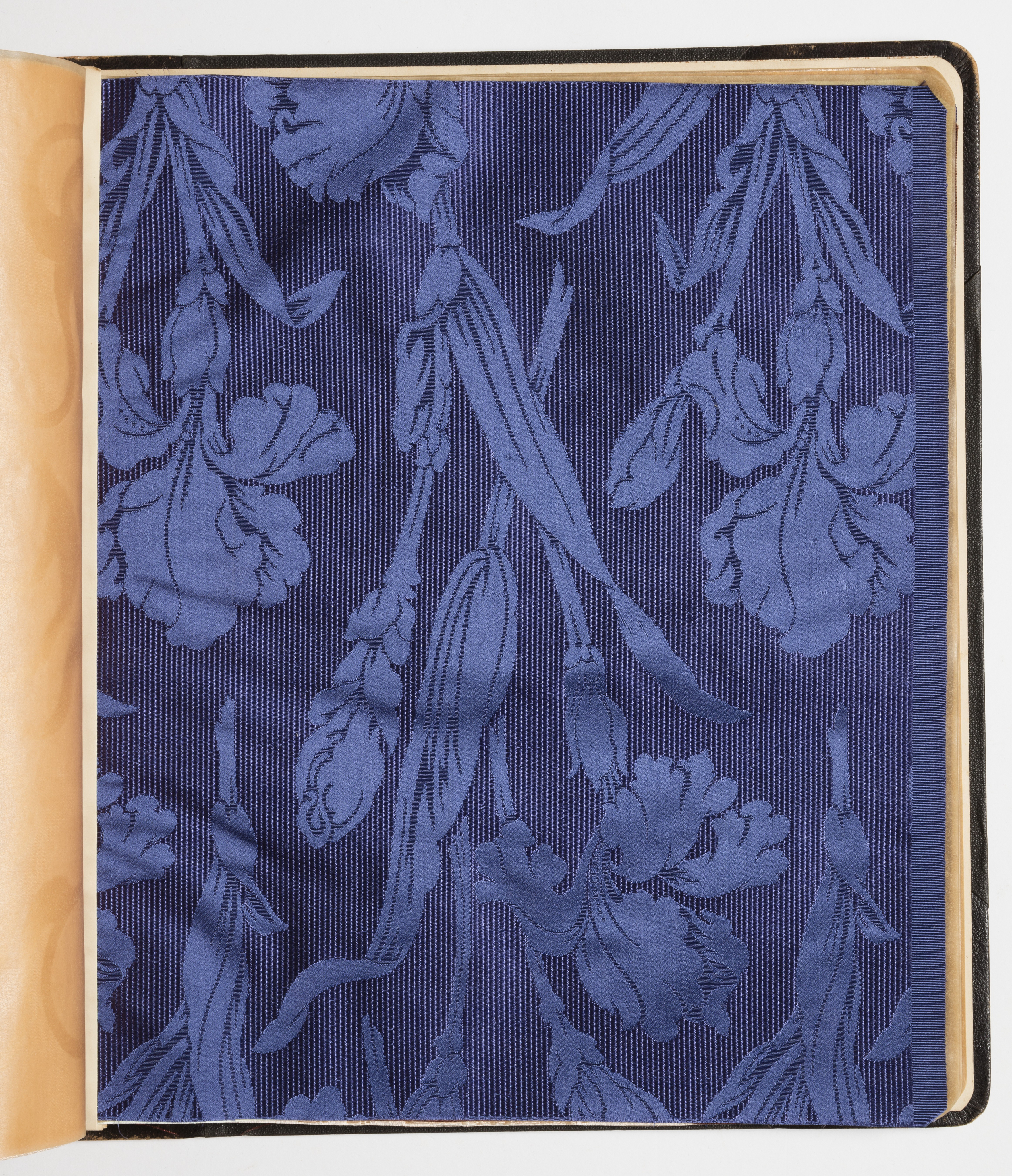 The samples contained within these books are in excellent condition and maintain a vivid brightness and intensity because they have been protected by the leather binding. The large size of the samples (10 by 12 inches) is advantageous for displaying the large scale of the designs. These would be the first woven silk sample books from this important Italian silk-producing center to enter the collection. At the time of proposed acquisition, the museum’s textile sample book collection has strong representation from England, France, and the United States, primarily for printed textiles.