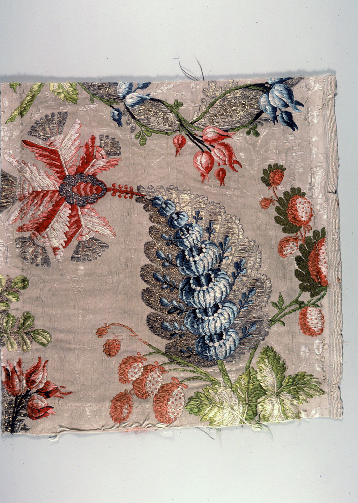 This is a Fragments. It is dated 18th century and we acquired it in 1981. Its medium is silk and metallic thread. It is a part of the Textiles department.