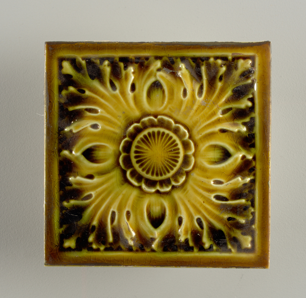 Tile (USA); Manufactured by J. & J. G. Low Art Tile Works; glazed stoneware; 15.5 x 15.5 x 1.0 cm (6 1/8 x 6 1/8 x 3/8 in. ); Gift of Florence Barnes; 1981-56-3