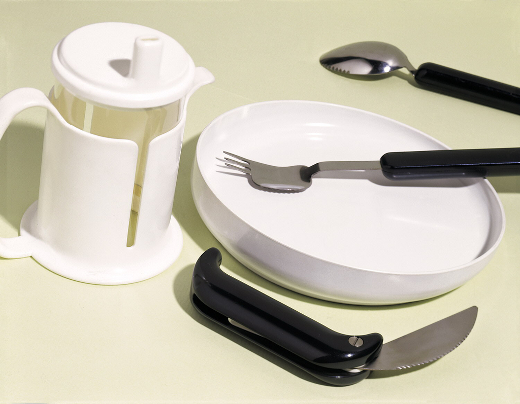 This is a spoon. It was designed by Ergonomi Design Gruppen and design team member: Maria Benktzon and Sven-Eric Juhlin and manufactured by RFSU Rehab. It is dated 1981 and we acquired it in 1982. Its medium is stainless steel, plastic (melamine, polycarbonate). It is a part of the Product Design and Decorative Arts department.